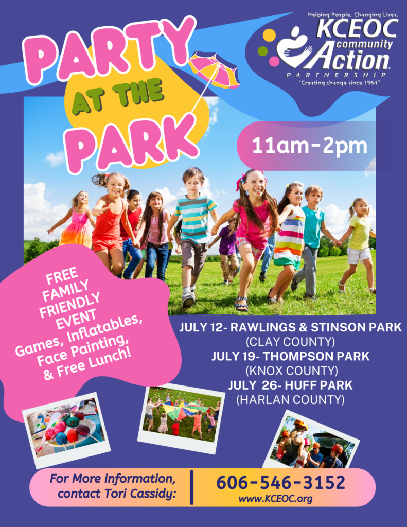 Mark your calendars for KCEOC’s annual Party at the Park! This year, we’re bringing the fun to three different locations: July 12 at Rawlings & Stinson Park (Clay County) July 19 at Thompson Park (Knox County) July 26 at Huff Park (Harlan County) This family-friendly event is completely free and features games, inflatables, […]