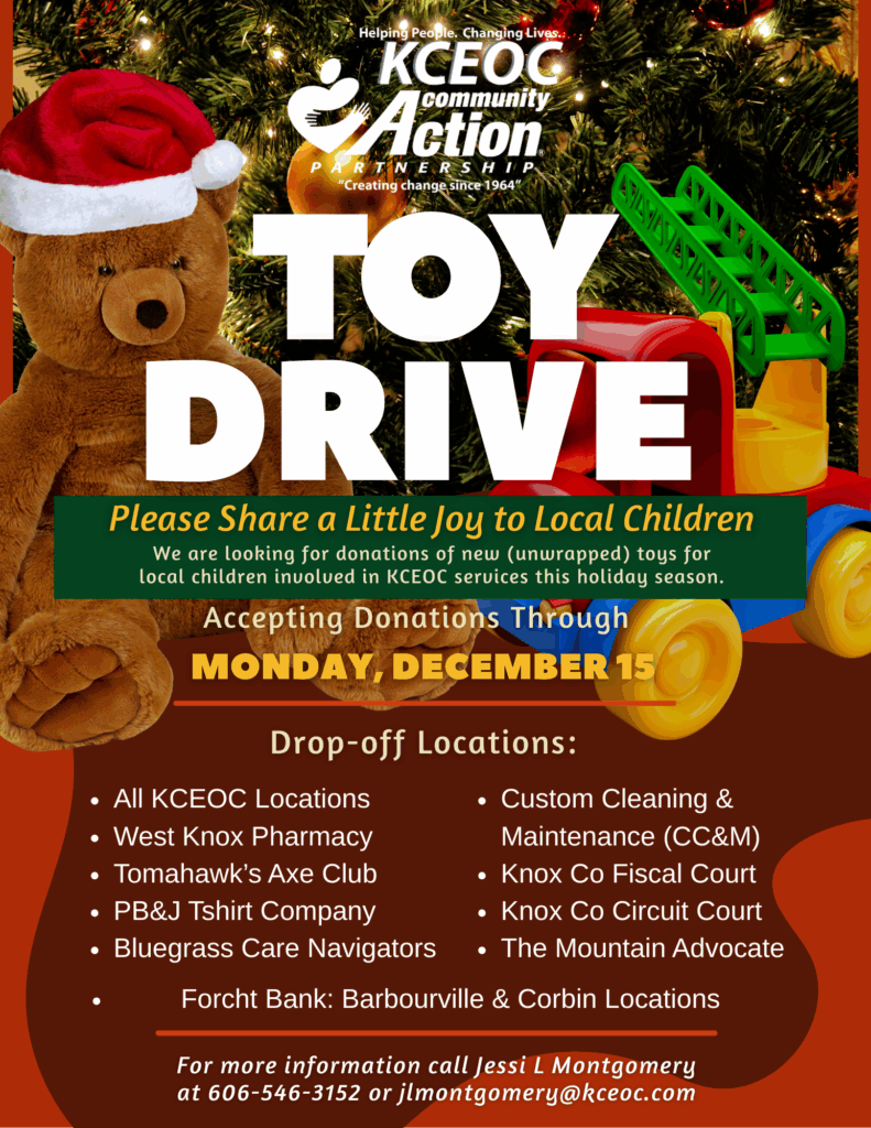 KCEOC Community Action Partnership is excited to launch our annual Toy Drive, supporting local children who are part of KCEOC programs and services. This holiday tradition helps ensure that every child in our community has a reason to smile this season—and we need your help to make it happen.